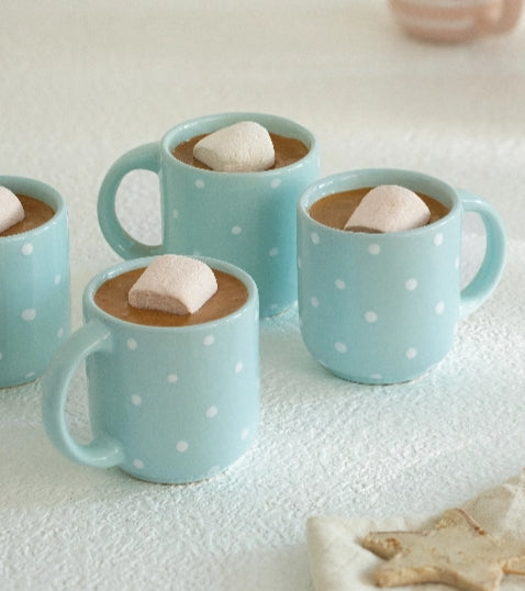 ceramic mug tall polka dots w/wdn lid blush