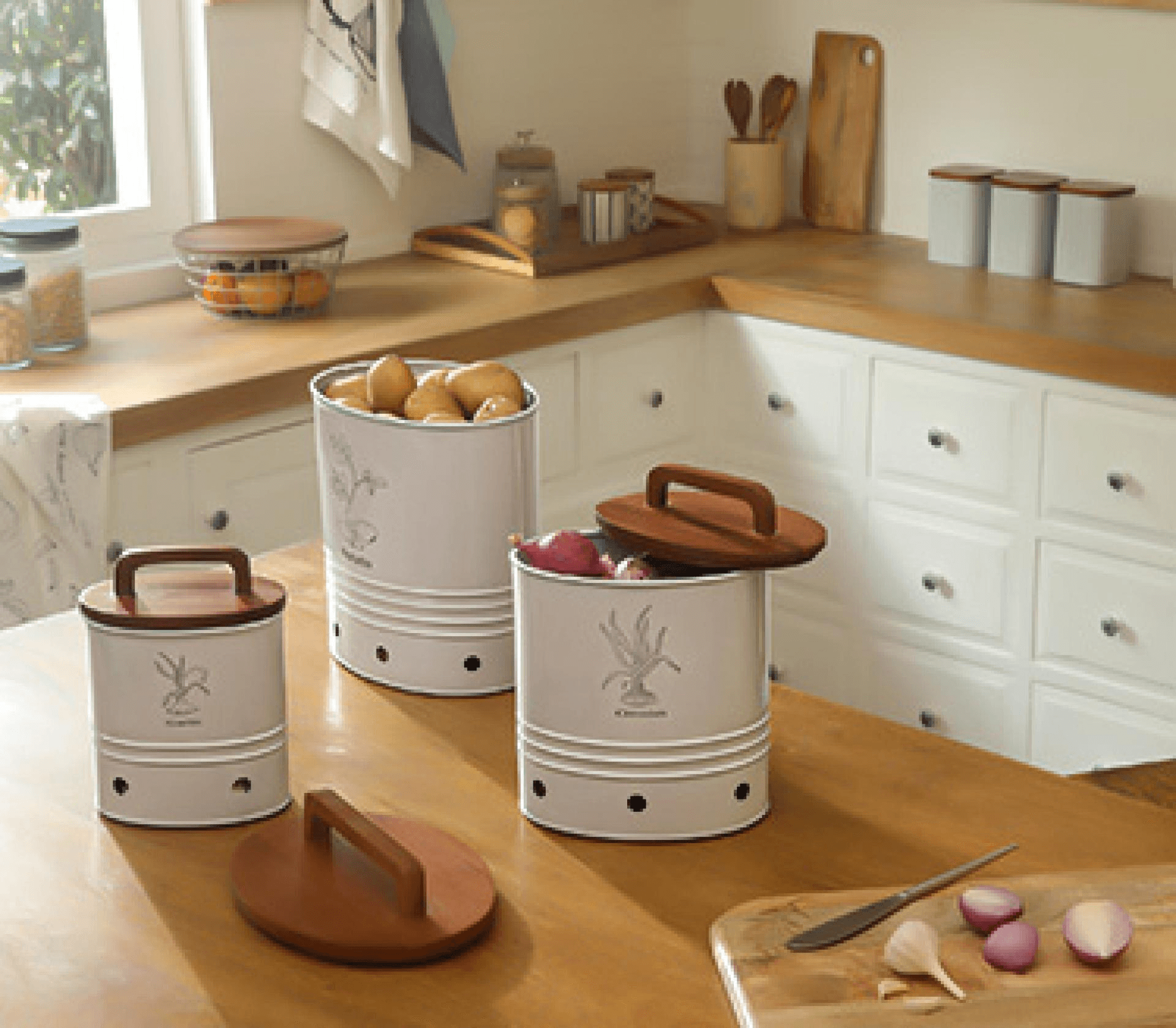 Egg Shell Metal Potato Storage Bin With Wooden Lid
