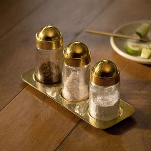 It's the little things that matter when it comes to your favourite table setting. You can keep rock salt, sea salt and pepper in this handcrafted set of three salt & pepper shaker with base. The containers made of glass and the base and lid made of high-quality brass makes it beautiful and functional.