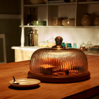 Fluted Glass Cloche With Wooden Base